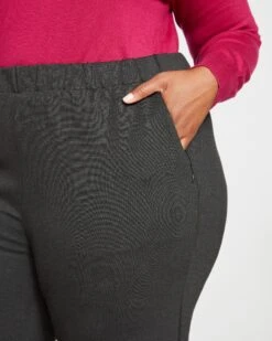 Stephanie Wide Leg Stripe Ponte Pants 30 Inch – Forest Green With Black/White Stripe