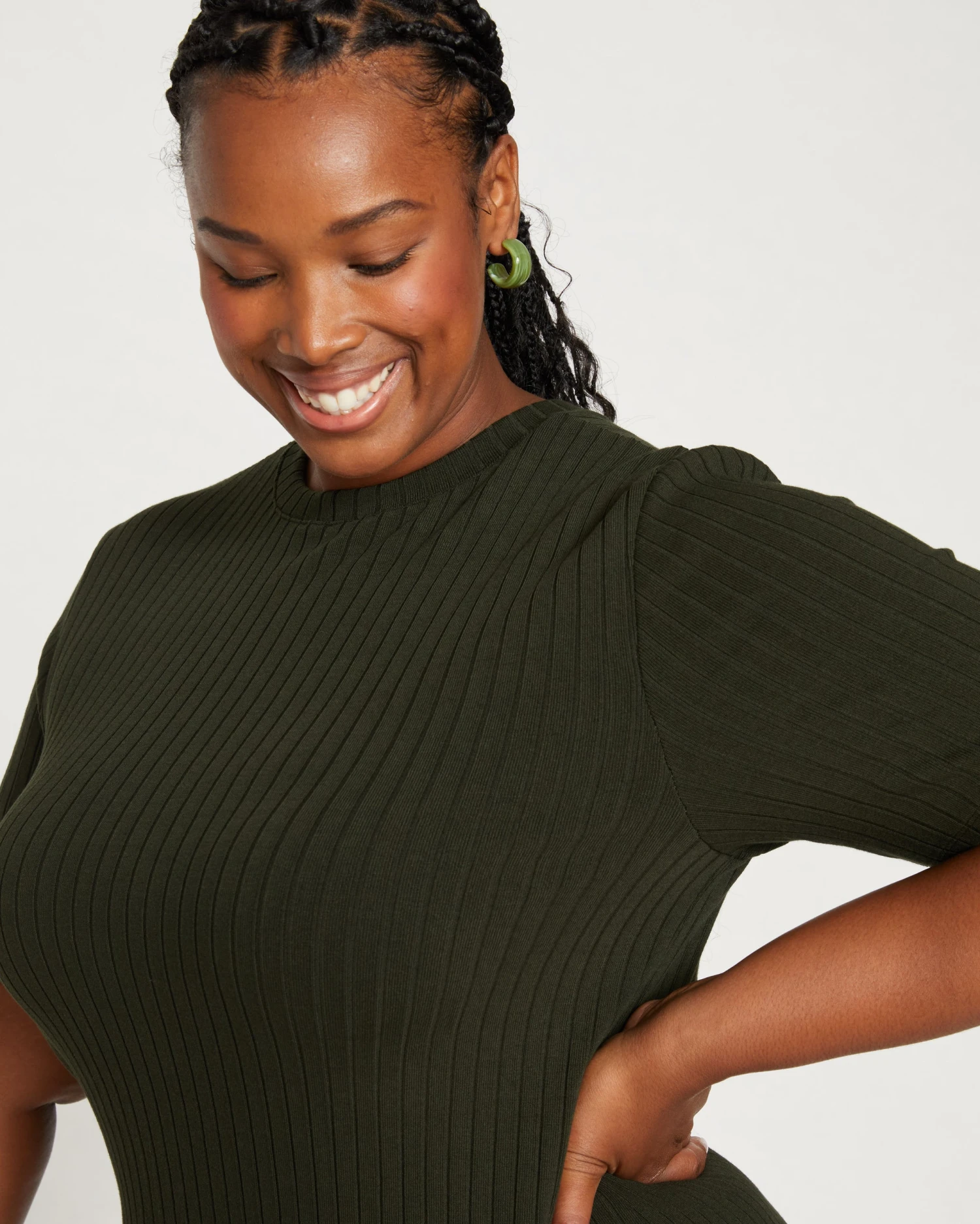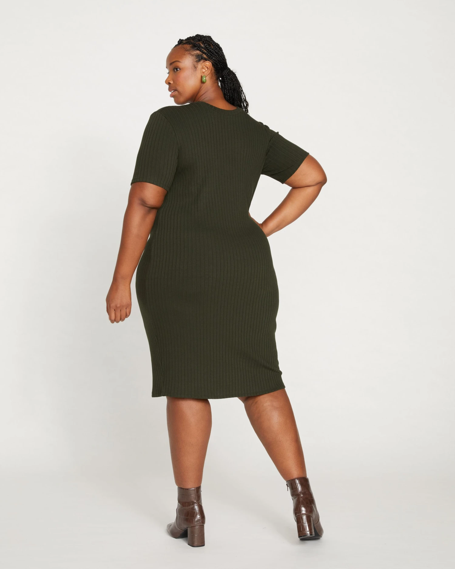 This is your new everyday dress. Made from a mid-weight transitional fabric, it features a classic rib throughout with a skimming fit. Cozy, breathable, relaxed. Wear this essential style under your leather jacket or fuzzy cardigan.