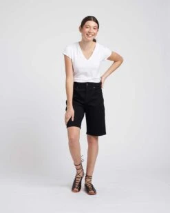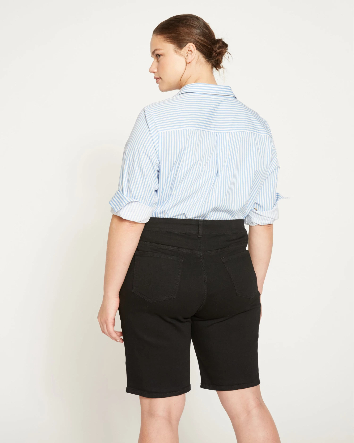 The Bae Denim Shorts are like we took your favorite, coziest pair of jeans and made them shorts. Because, well, we did. Designed for a comfy relaxed fit just like our best-selling Bae Boyfriend Jeans but with an 11″ inseam that hits just above the knee. Made from our signature hidden-stretch denim that feels so good, you’ll forget you’re wearing denim. Engineered with an easy fit that you can roll up for a styled look or leave unrolled for a little extra length.