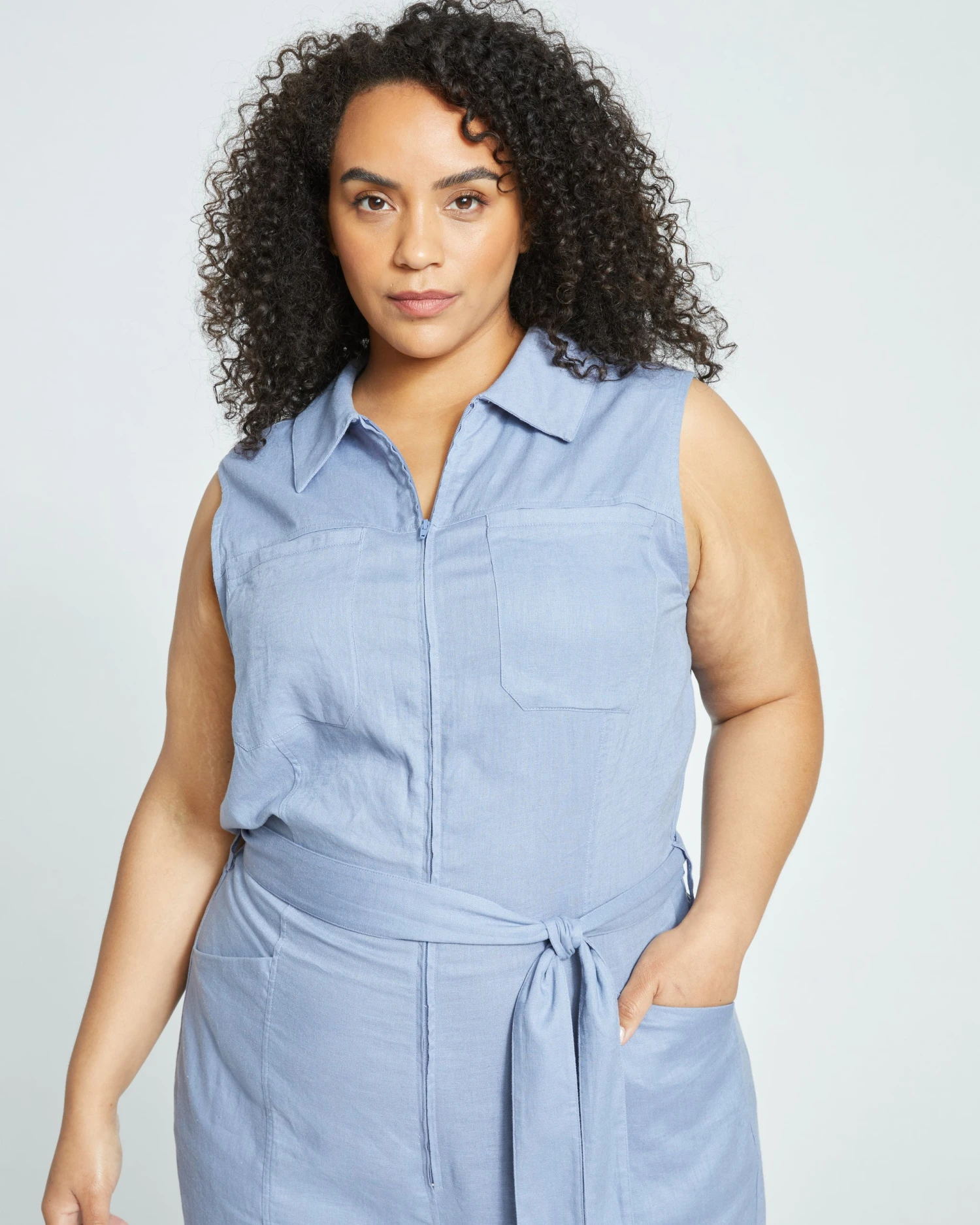 We know you love a good jumpsuit, so we made this for you. Cut from our signature stretch linen, it features denim-inspired details like the point collar, chest pockets, and 2-inch seamed cuff at the hem. This day-to-night style fits close through the body and falls into a relaxed leg. Plus, it features a self-belt with only two belt loops so that you can opt to go beltless and still look super chic.