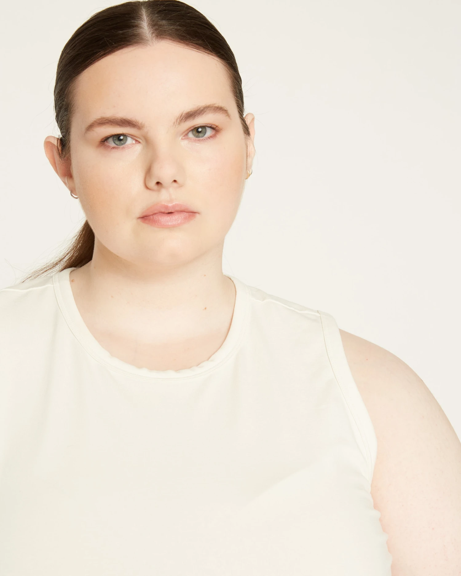 The Cai High Neck Tank is the obvious choice for your warmer weather rotation. Designed with a high neckline and a cutaway sleeveless look that is so on-trend. Made from a super soft Peruvian cotton blend we developed ourselves from the thread up. This tank is endlessly essential for all your spring and summer outfits.