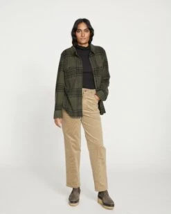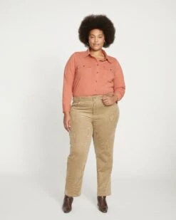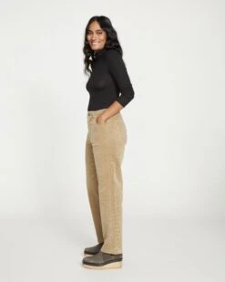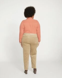 Finally, stretch corduroy. These are the pants you’ve been waiting for. Crafted from classic 14 wale corduroy with a refined pile and soft feel, these elevated cords are cozy and chic. They feature our signature high rise, standard fit through the hips, and an easy straight leg with a 30″ inseam. What makes them special is the subtle denim detailing, like reinforced finishing at the waistband, pockets, and seams.