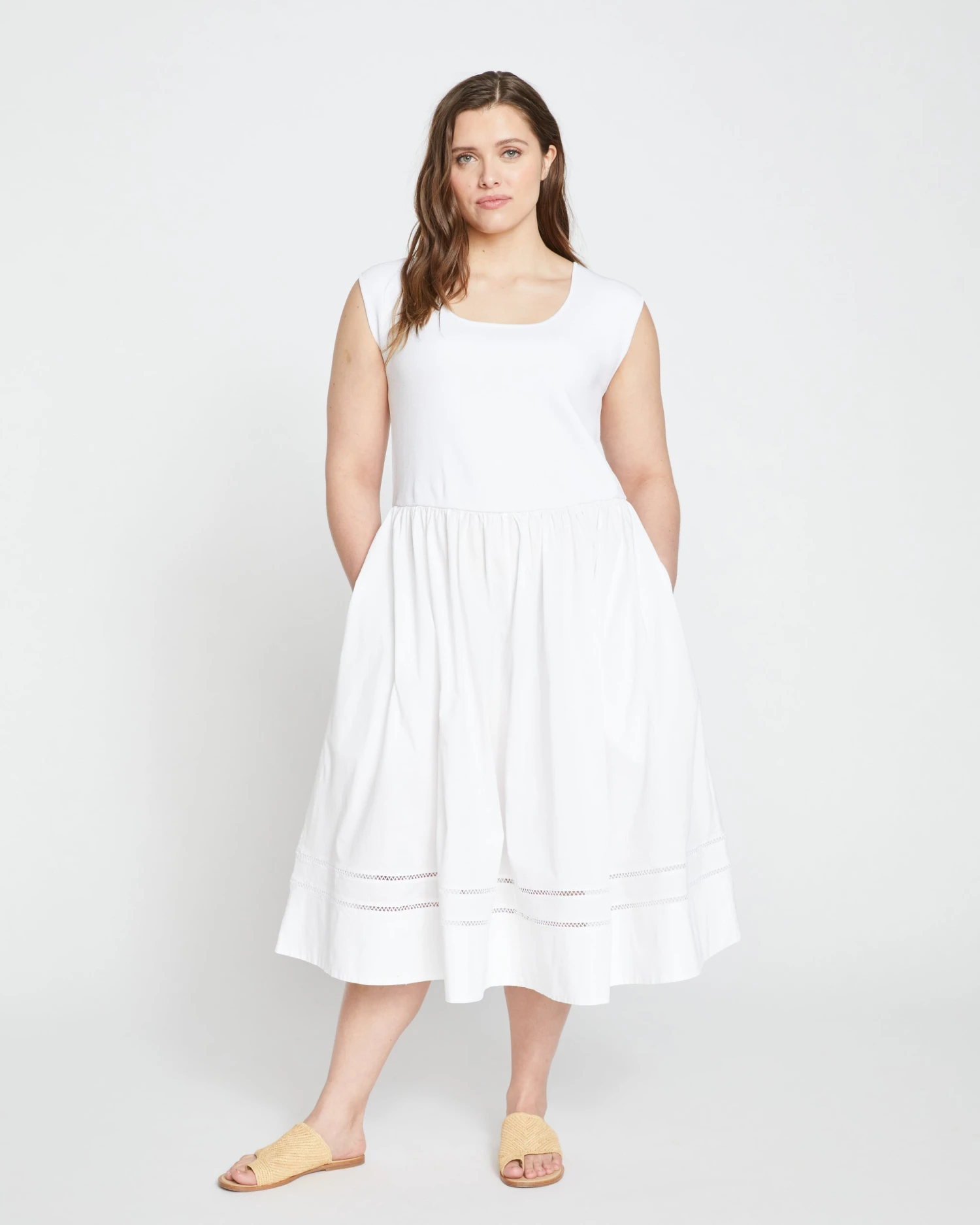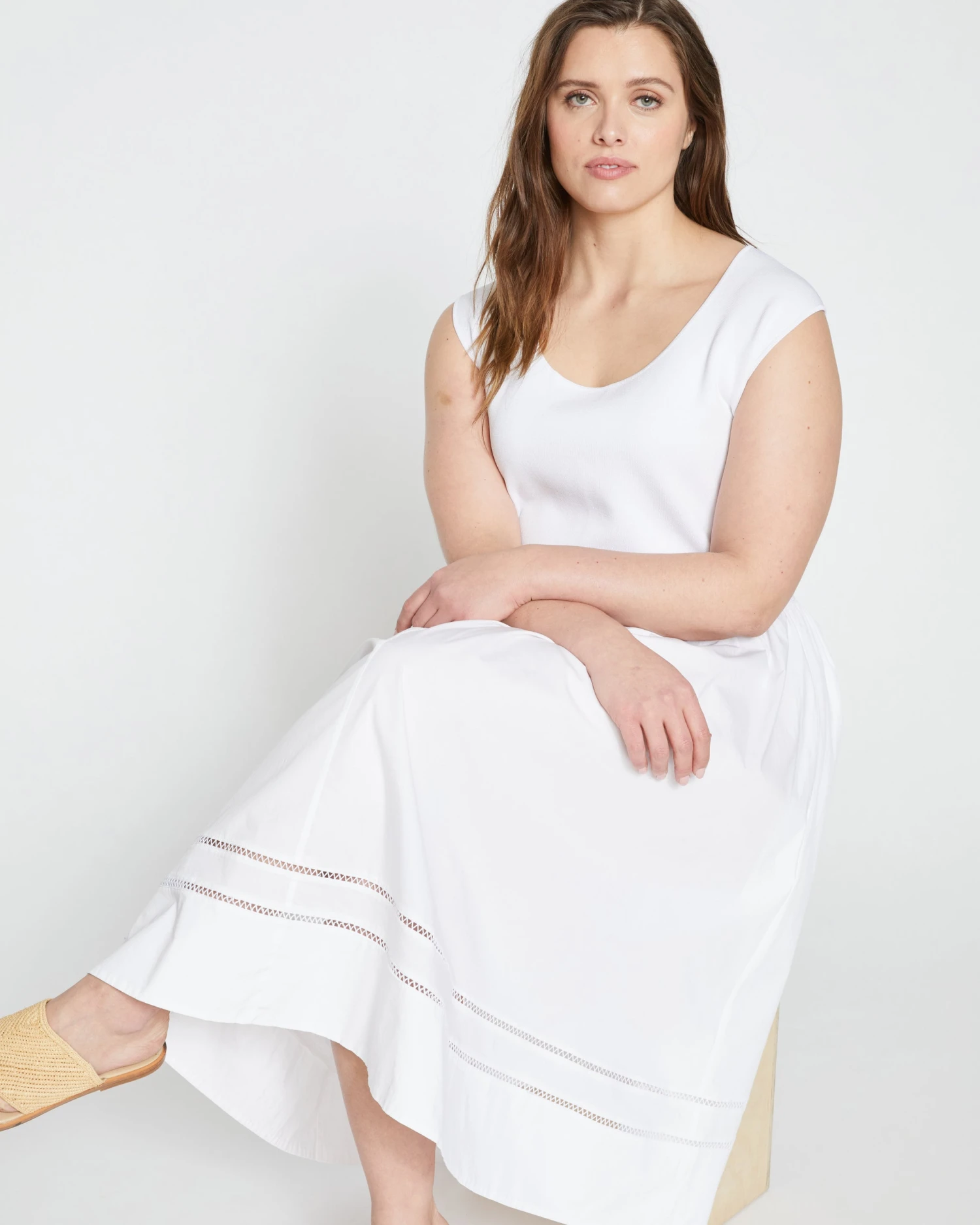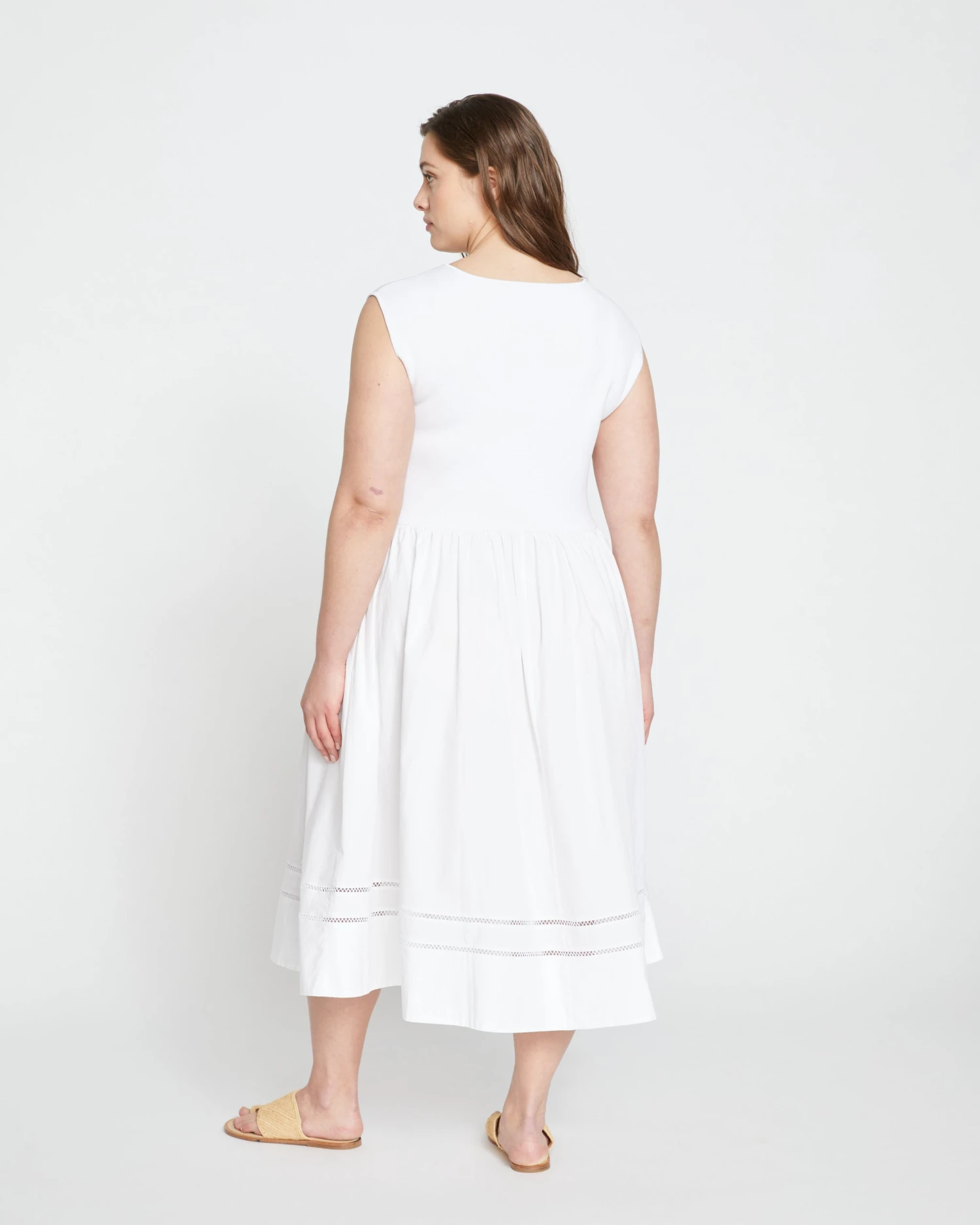 This dress was made for you. It’s perfect for spring parties, summer cocktail soirees, and just about anything else. We wanted to design a dress that you’d have forever – chic and classic but still detailed enough to feel like a treasure. It features a thick knit top with stretch and a crisp poplin skirt with delicate windowpane stitch detailing along the hem. The square neckline and cap sleeves look modern and elegant but the best part is that they offer ideal coverage.