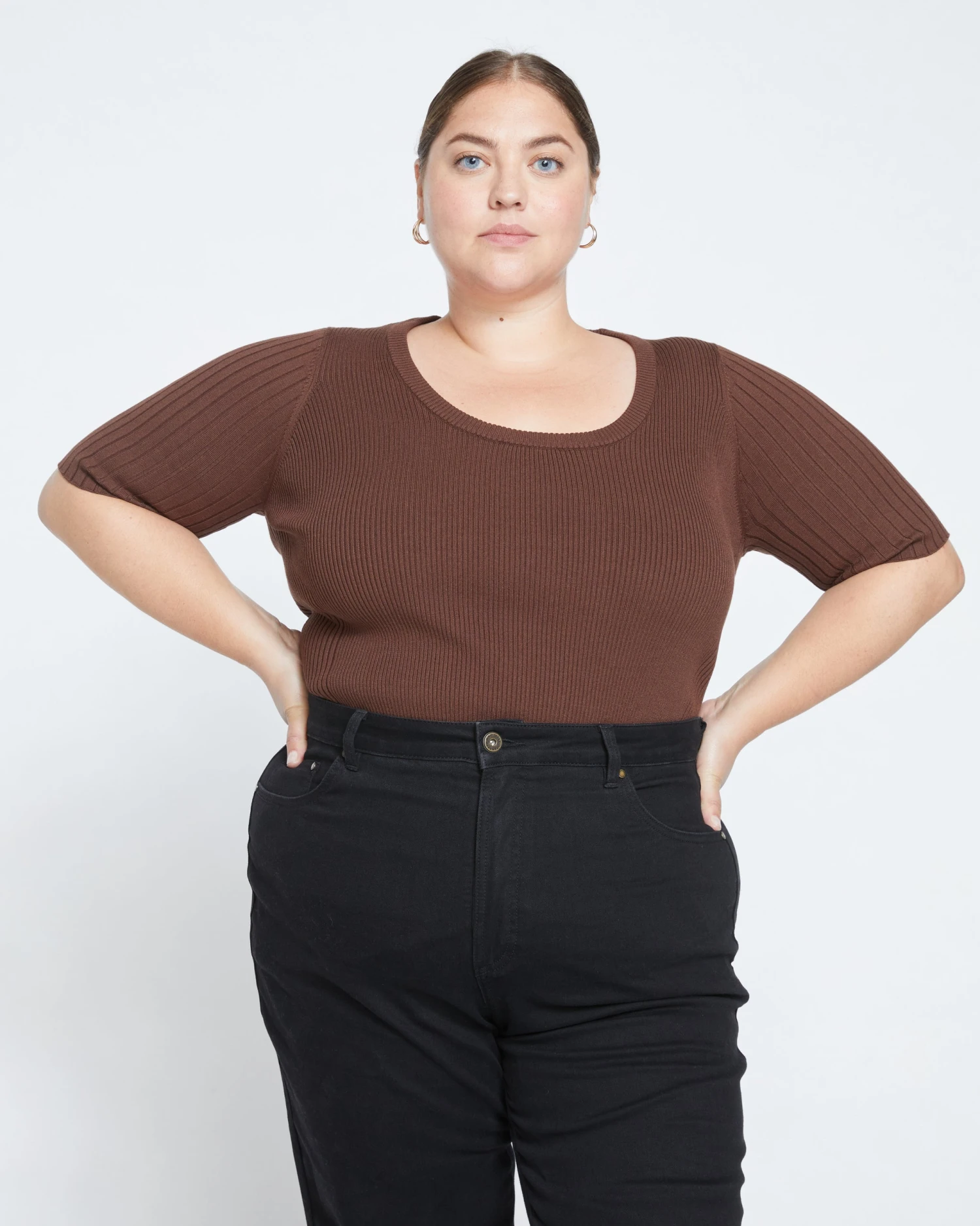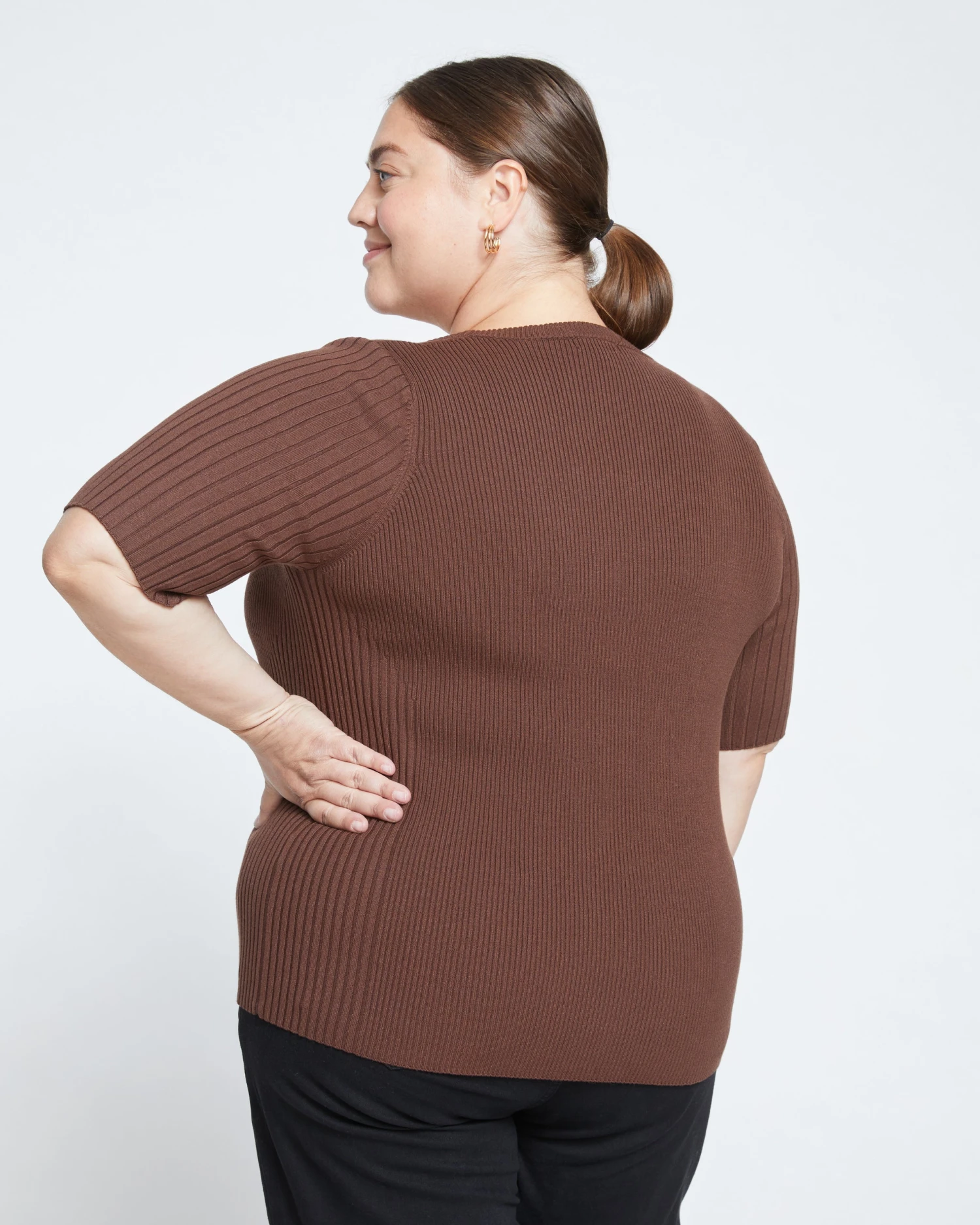 Is it a sweater or a tee? It’s the best of both. With beautifully luxe finishes, this dense and smooth knit looks sleek and polished, and it feels cool to the touch. This scoop neck style features a thin rib stitch body with a wider stitch through the sleeves. You can wear it all day long (and even to work) because it holds its shape with incredible bounce back and always looks great.