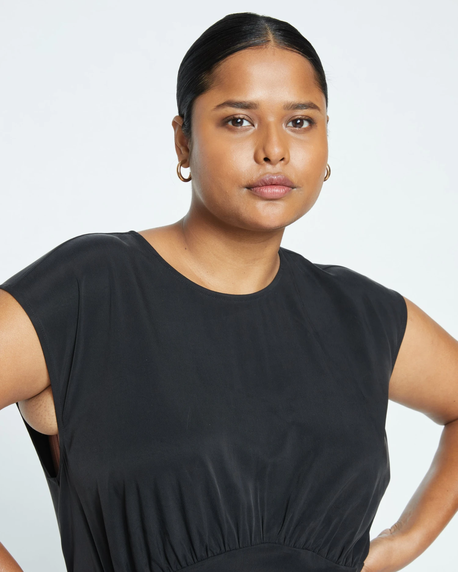 Meet your new 9-5 layering piece. Easy yet elevated, this fitted shell tank is made from our new stretch cupro fabric that feels as smooth as silk but is way easier to care for. As in, it’s machine washable! It features a crew neck with a luxe binding finish and gathering under the bust. Wear yours under a blazer to stay cool and look chic at work. Expert tip: This style also looks super cute on its own as a fancy tank.