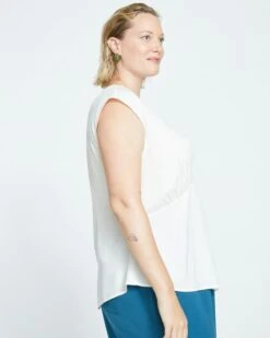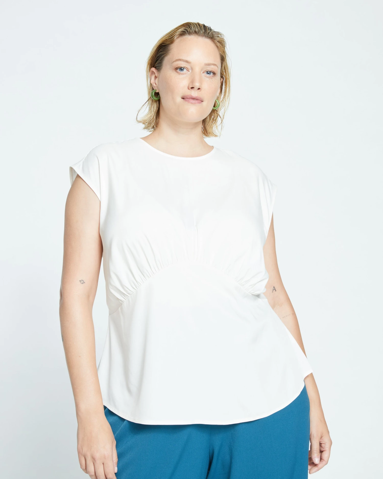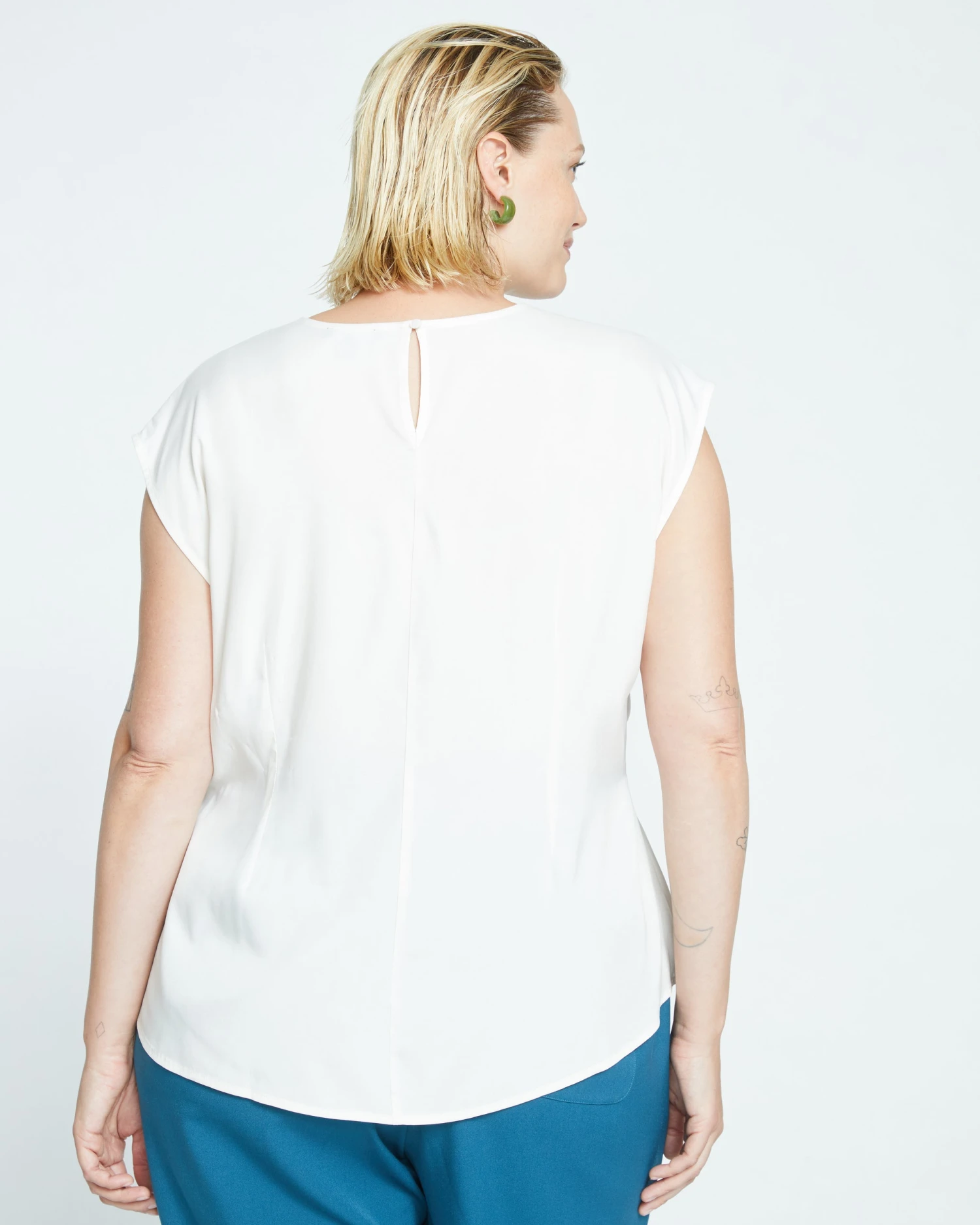 Meet your new 9-5 layering piece. Easy yet elevated, this fitted shell tank is made from our new stretch cupro fabric that feels as smooth as silk but is way easier to care for. As in, it’s machine washable! It features a crew neck with a luxe binding finish and gathering under the bust. Wear yours under a blazer to stay cool and look chic at work. Expert tip: This style also looks super cute on its own as a fancy tank.
