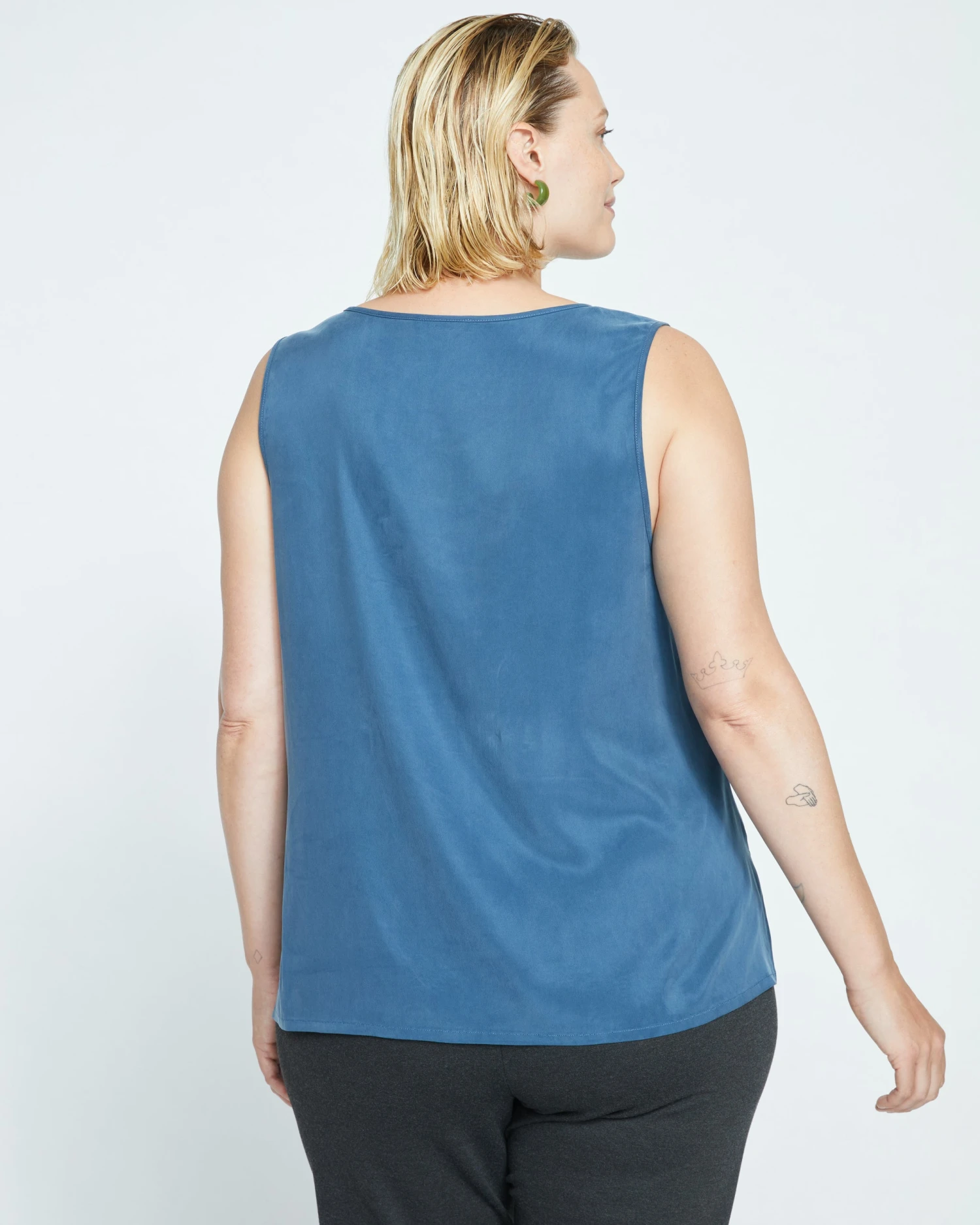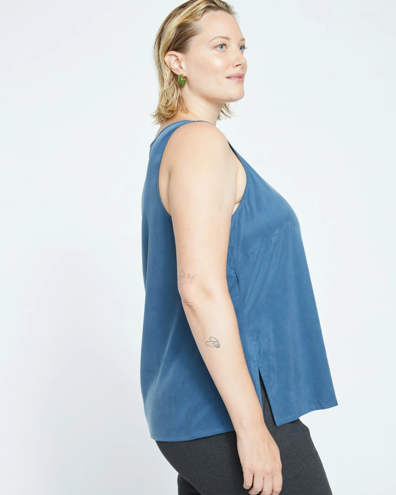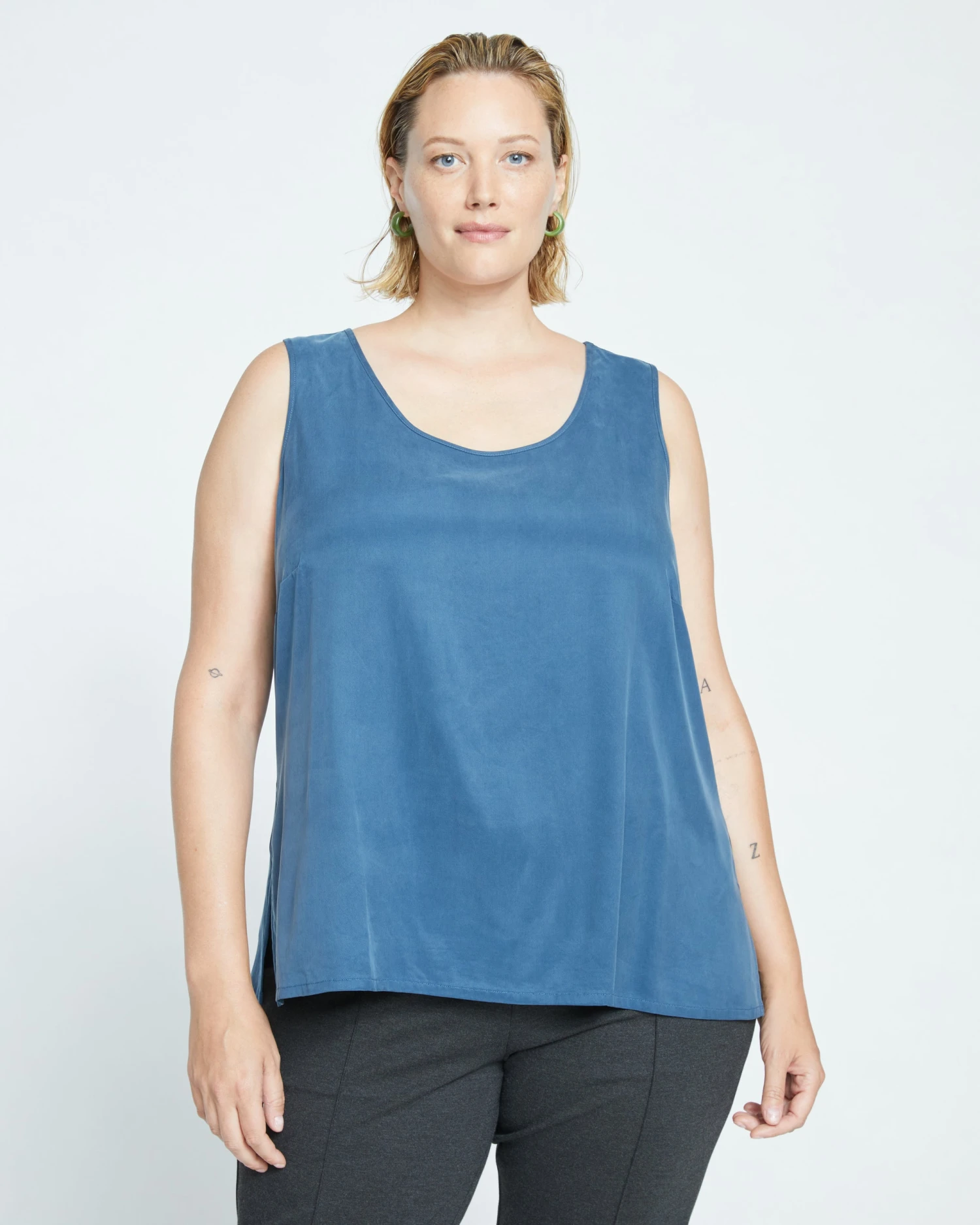 The day-to-night tank of the season. Easy yet elevated, this straight-fit tank is made from our new stretch cupro fabric that feels as smooth as silk but is way easier to care for. As in, it’s machine washable! It features a scoop neck with a luxe binding finish and side slits at the hem. Wear yours with the Cooling Stretch Cupro Pants or Cooling Stretch Cupro Bias Skirt for the full look.