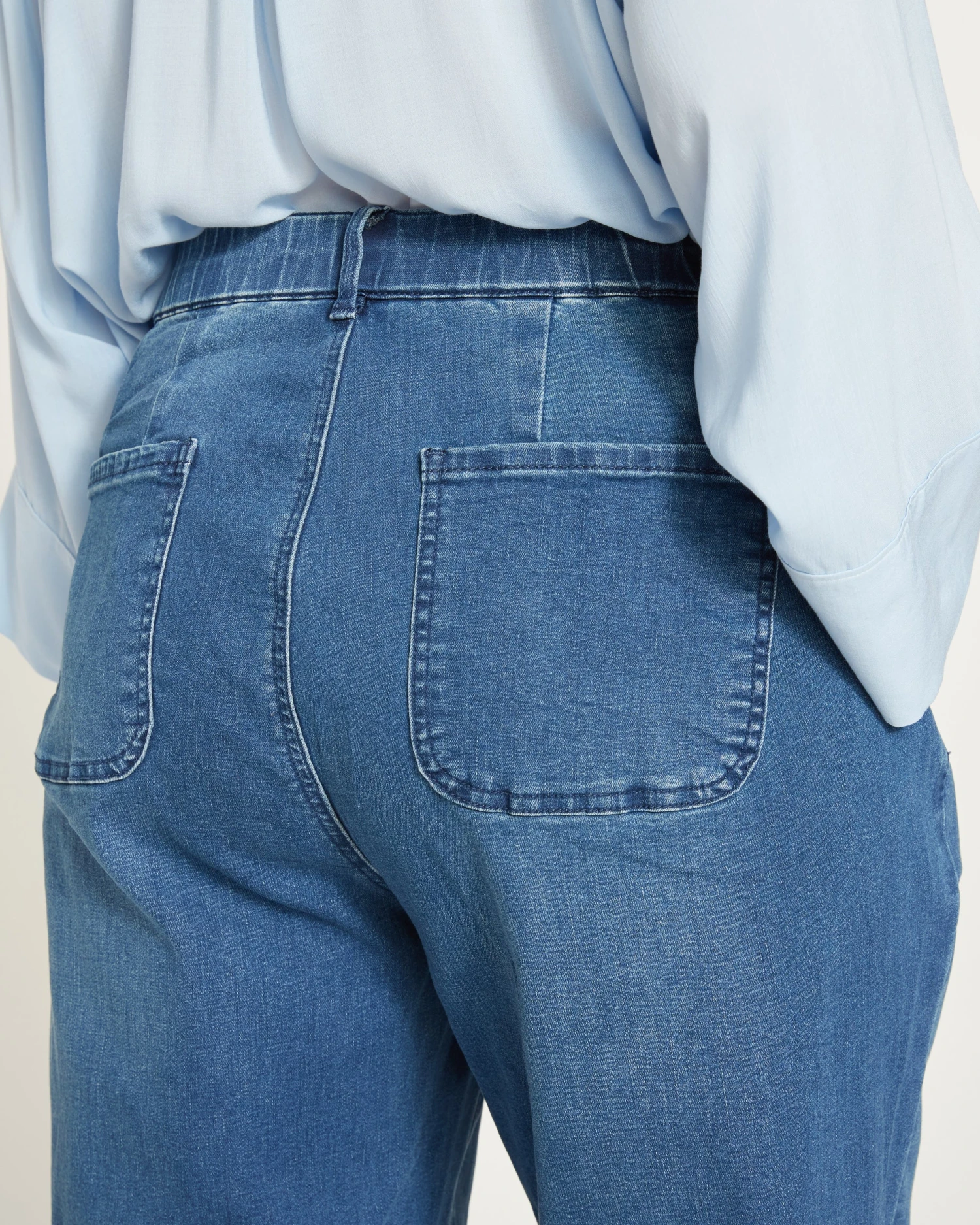 Meet your new favorite off-duty denim. Super stretchy and supremely soft, they’ve got a mid-rise with an ultra-comfortable elastic back waist and fall to a drapey, slightly tapered leg. We’ve also removed the traditional back yoke and added shaping darts for the perfect fit. Finishing touches include four-pocket styling and a zip fly with value fastening.
