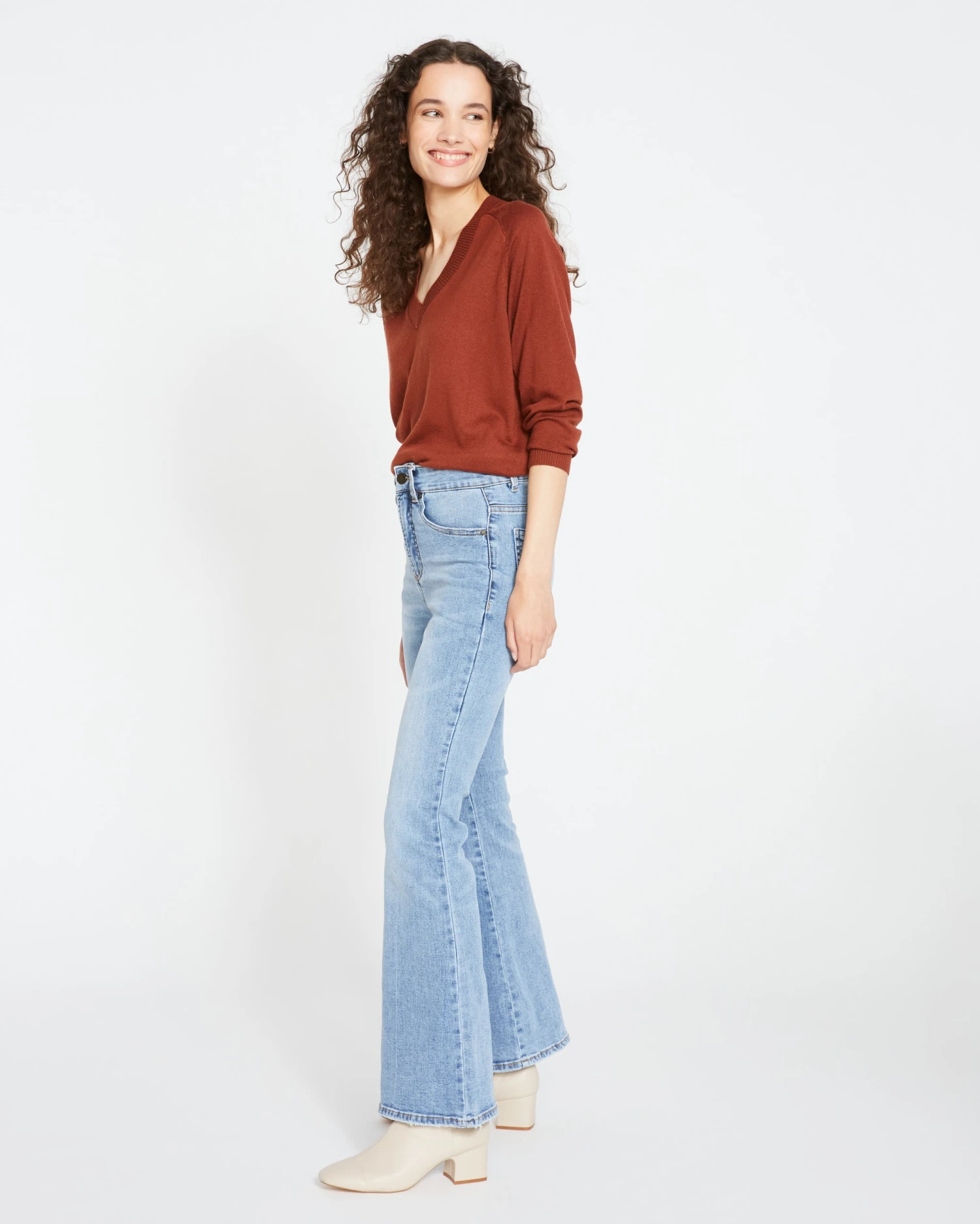 The Farrah High Rise Flared Jeans are the newest style in our denim collection. Both of-the-moment and classic, these flares are engineered to be super stretchy and specifically constructed for a perfect fit and unreal comfort. They sit close to the body and are fitted through the thigh, right down to the knee where they flare out into a refined retro-inspired leg.