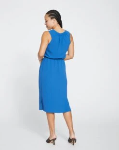 A dress fit for the gods. That’s you. This crinkle crepe dress evokes the sea with its wavy texture and flowy fit. Key details include the high, gathered neckline, the slits at the hem, and the encased elastic waistband that lends a blouson effect to the top portion of the dress. Oh, and the straps will cover your bra (or bathing suit)! This versatile frock is great on vacation or simply out on the town.
