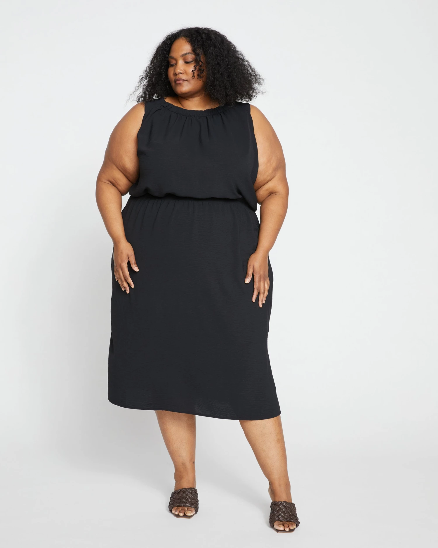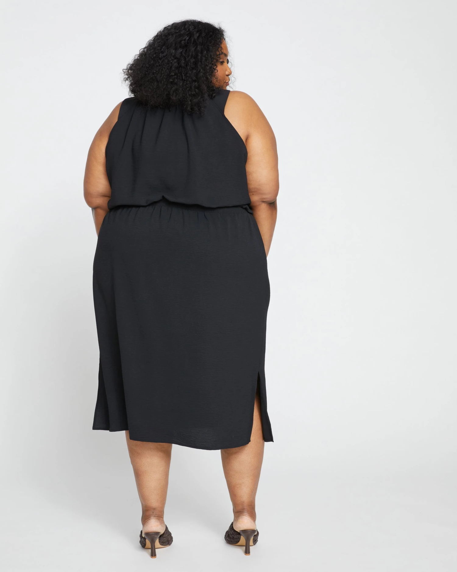 A dress fit for the gods. That’s you. This crinkle crepe dress evokes the sea with its wavy texture and flowy fit. Key details include the high, gathered neckline, the slits at the hem, and the encased elastic waistband that lends a blouson effect to the top portion of the dress. Oh, and the straps will cover your bra (or bathing suit)! This versatile frock is great on vacation or simply out on the town.