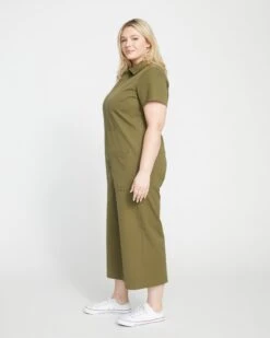 Suit up in this military-inspired jumpsuit that instantly elevates your look. With a relaxed fit and a minimal design, this is the ultimate casual cool piece your closet craves. Featuring front and back patch pockets and a subtle elastic detail at the back, this jumpsuit is engineered for a perfect fit.