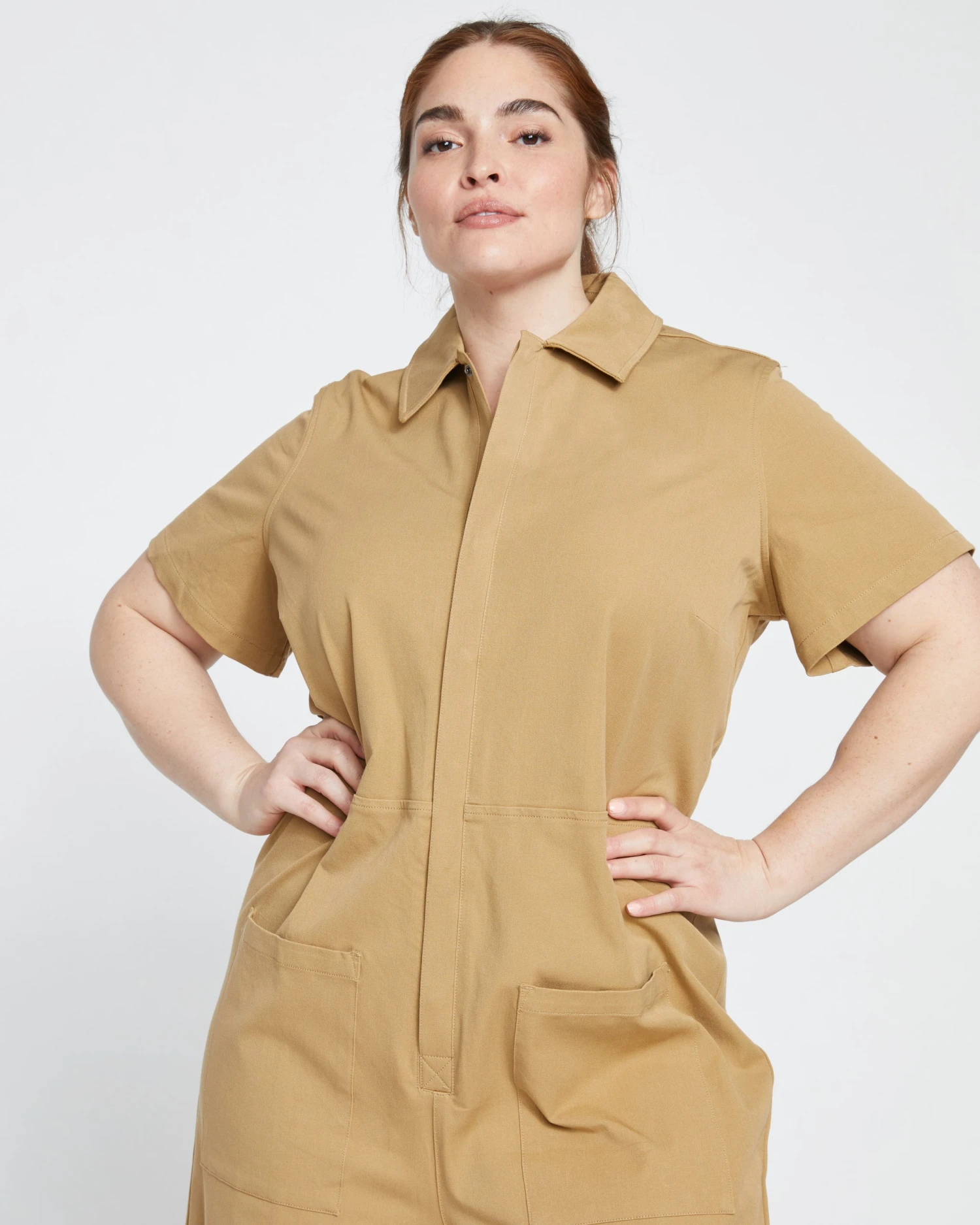 Suit up in this military-inspired jumpsuit that instantly elevates your look. With a relaxed fit and a minimal design, this is the ultimate casual cool piece your closet craves. Featuring front and back patch pockets and a subtle elastic detail at the back, this jumpsuit is engineered for a perfect fit.