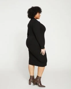 The epitome of understated luxury. This sleek sweater dress is knitted using a Milano stitch technique for a dense feel and soft structure. It features a skimming, close-to-the-body fit with stretch for easy everyday movement. Key details include the polo collar, V-neckline, and set-in long sleeves.