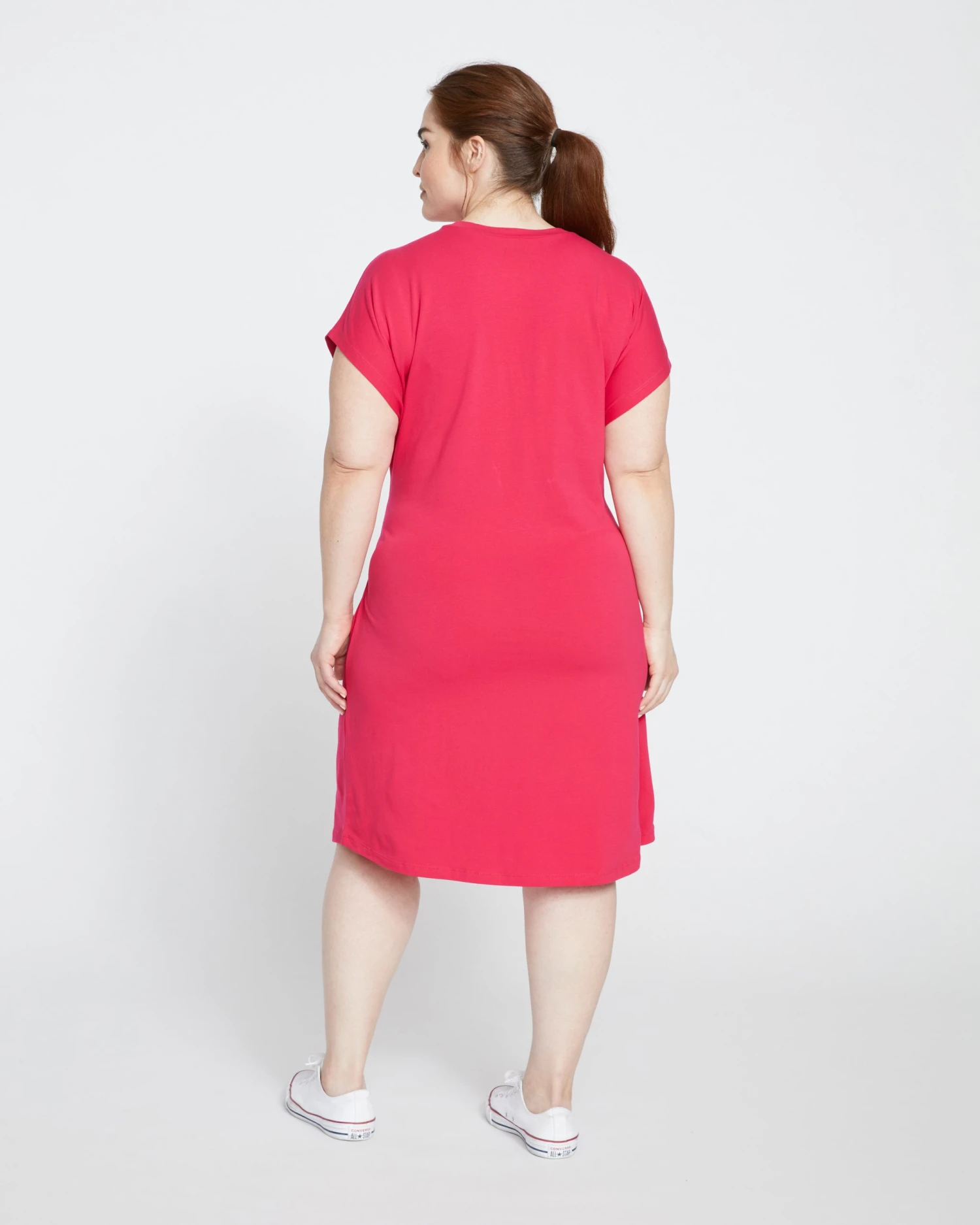 Casual meets cool in this tie-waist short sleeve jersey dress. Made from ultra-soft Peruvian cotton with two ties that wrap around you and cinch the waist.