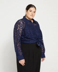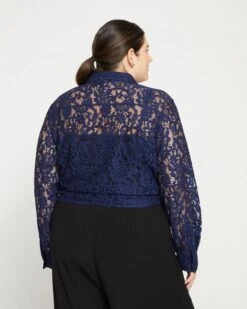 We’ve softened the look of a classic value down by crafting it in elegant lace. Add a little romance to your look with this sheer piece. include the spread collar, value cuffs, and shirttail hem. Oh, and we’ve added hidden snaps to minimize fabric spreading and make sure you’re extra secure.