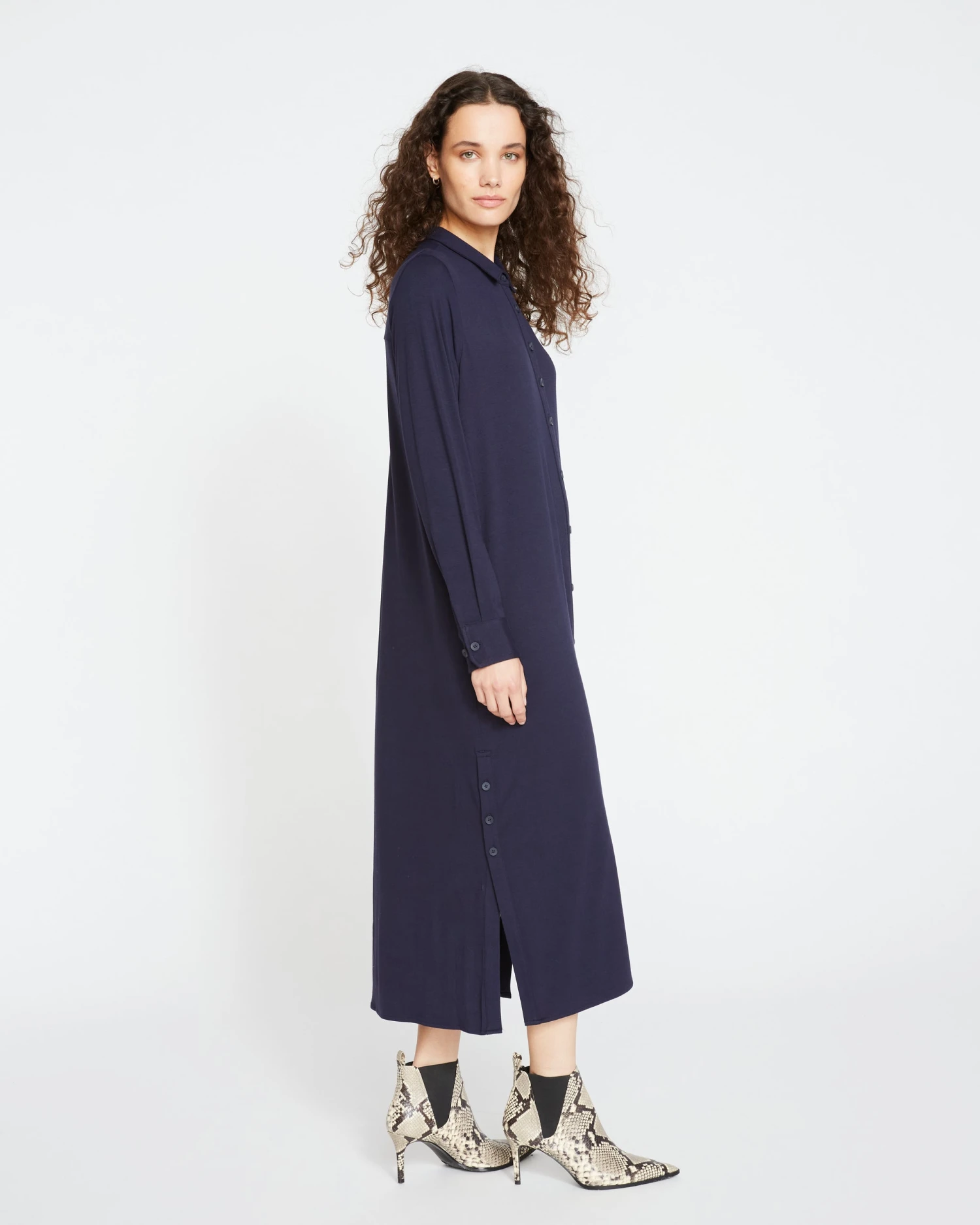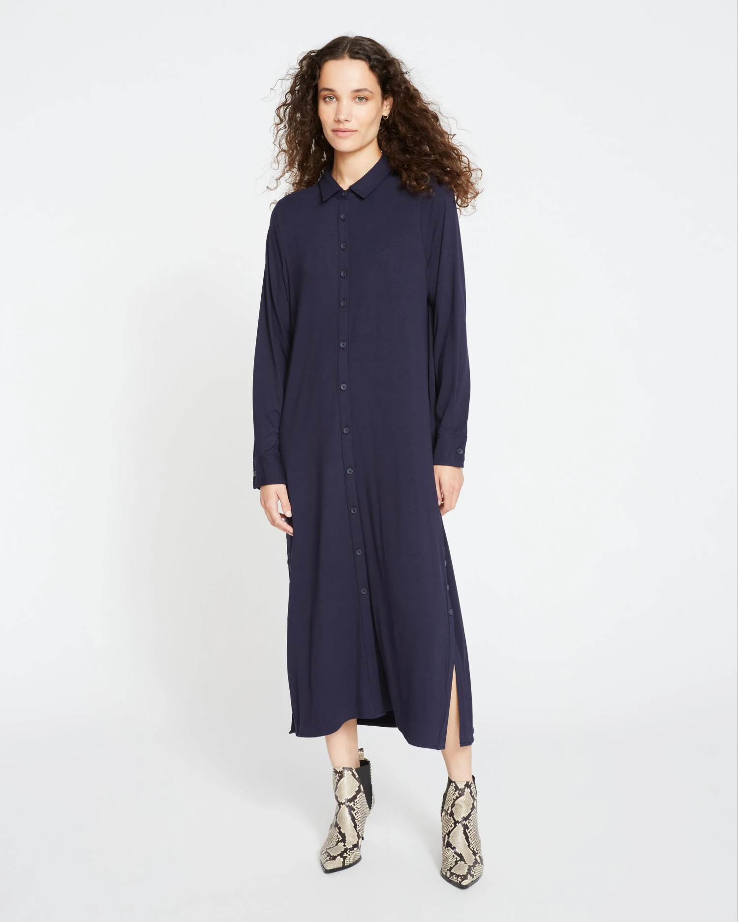The Sally Liquid Jersey Shirt Dress is all about the values. Designed with a collared neckline and values the go all the way down the front of the dress. Plus, some side values so you can decide if you want a little extra side-slit detailing. The Sally Shirt Dress is made from our softest-ever liquid jersey that you’ll want to wear all day long. This piece is simple yet oh-so-lovely.