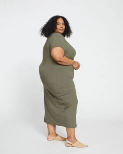 This is your spring-summer shift dress. It’s made from our softly structured divine jersey that has a luxe look and feel. Elegant and classic with the comfort of your favorite pajamas. This sleek dress features a beautiful drape and will move with you easily. Key details include the hook and eye neckline, that can be worn open or closed, and a front slit from the hem. Wear this one from your desk to your dinner table. Cheers to versatility!