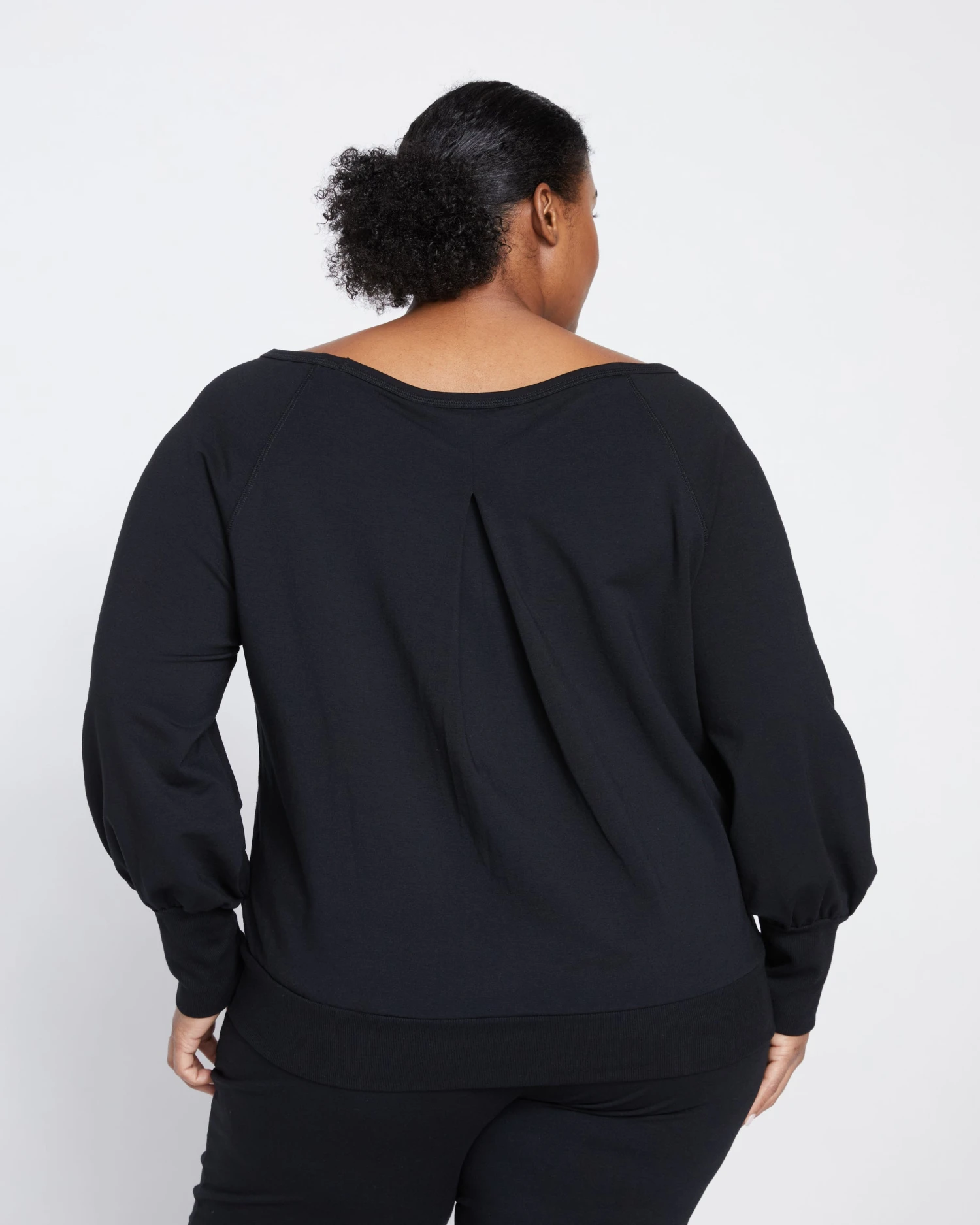 A romantic sweatshirt? Sign US up. This very sweet pullover features a wide scoop neckline and raglan sleeves with a refined balloon shape and gathering at the cuffs. There’s also an inverted pleat at the back and a wide band at the hem.