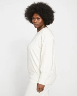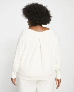 A romantic sweatshirt? Sign US up. This very sweet pullover features a wide scoop neckline and raglan sleeves with a refined balloon shape and gathering at the cuffs. There’s also an inverted pleat at the back and a wide band at the hem.