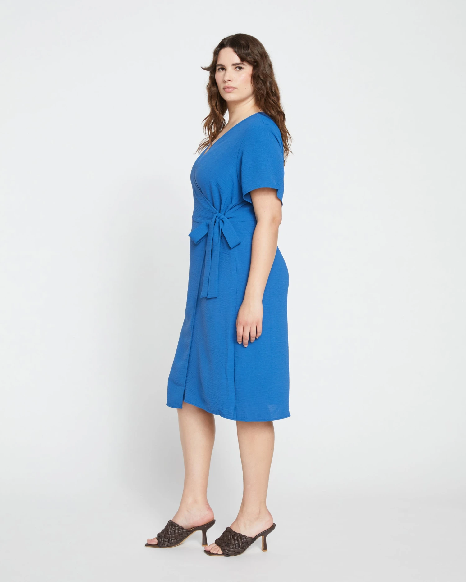 Become as beguiling as the ocean in this flowy wrap dress. You’ll make waves in our light and wavy crinkle crepe fabric as you sway and move throughout the day. It features a V-neckline with easy-fit short sleeves. Easy and airy enough for daytime, and striking at night.