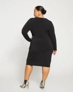 Get it twisted. As in, you need this dress. It’s made from our velvety-cool jersey that’s luxuriously smooth, soft, and silky. The body-hugging fit features a fun twist detail at the waist for gathering through the body. Additional details include the V-neckline and long set-in sleeves.